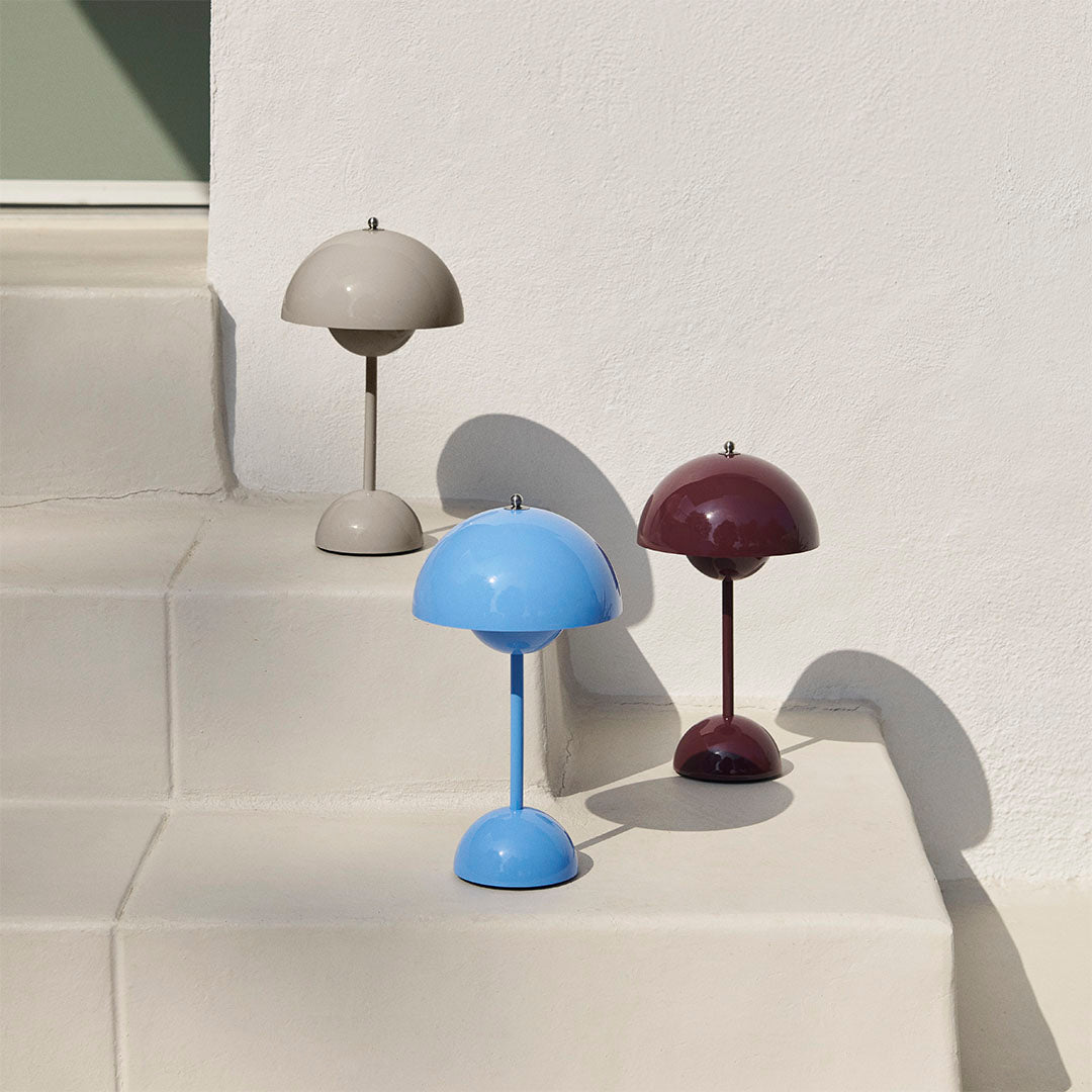 Slightly smaller in size than the table lamp version, and deliberately lightweight, the portable VP9 comes equipped with a USB charging cable. It is available in a wide range of contemporary colors and will bring a cozy atmosphere to indoor and outdoor settings.