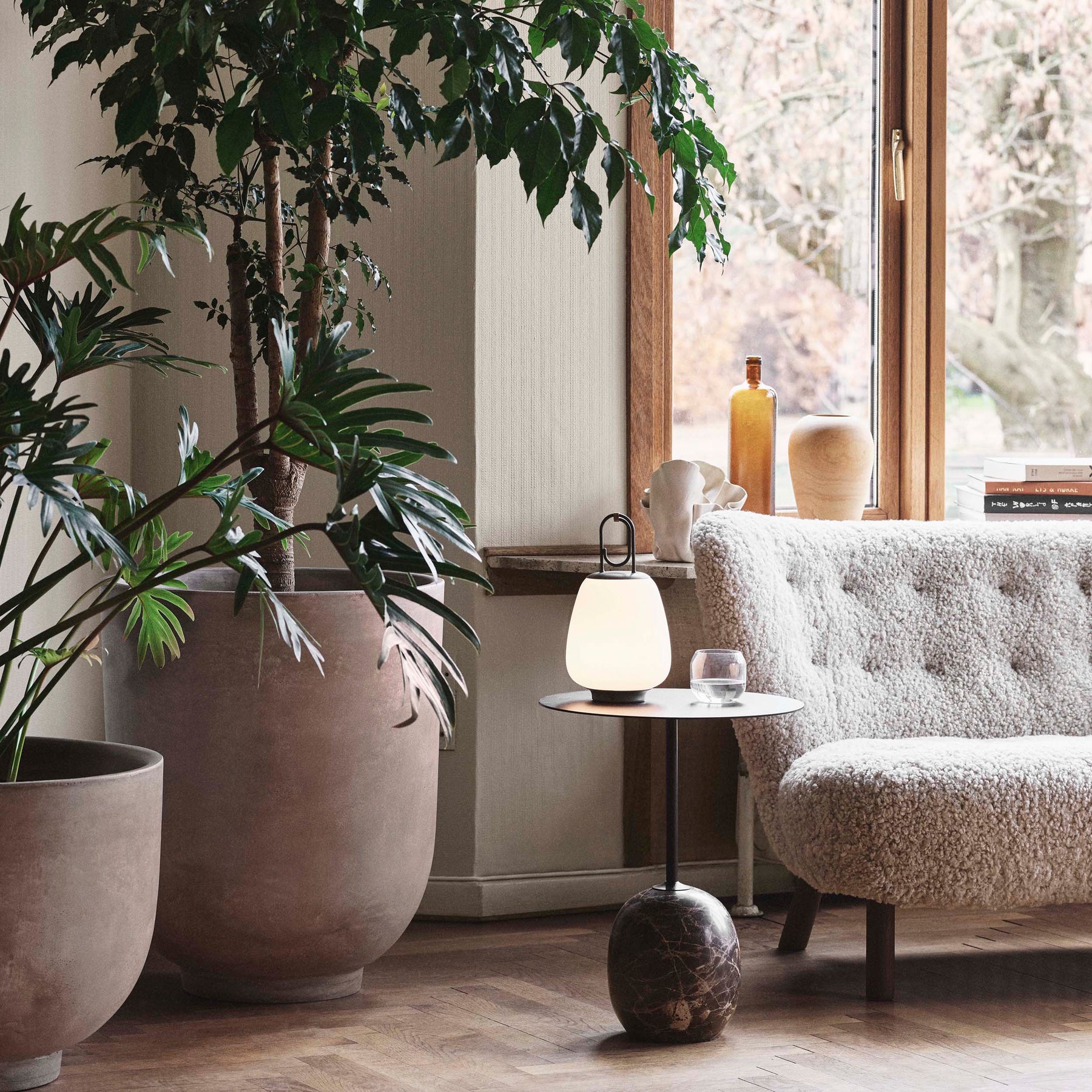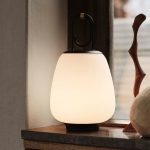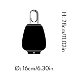 The glass shade is made from mouth blown satinized opal glass. The metal parts are deep drawn or bend and finally powder coated. Production Process: The base and the lamp shade are molded in polycarbonate (PC). Intended as a multipurpose piece, the battery-powered Lucca easily transitions from indoors to outside. It can operate for up to 12 hours and is easily recharged with a USB cable.